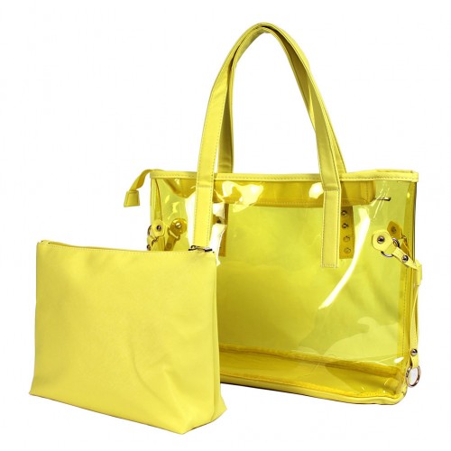 Clear PVC 2-in-1 Totes w/ Leather-like PU Trim - Yellow - BG-100843YL