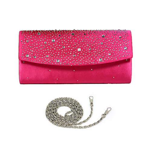 Evening Bag - Satin w/ Jeweled Flap - Fuchsia
