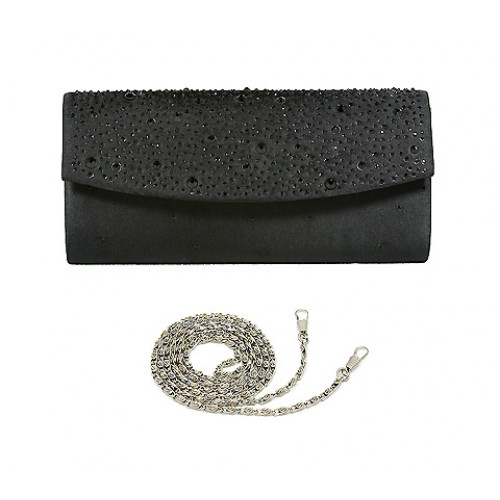 Evening Bag - Satin w/ Jeweled Flap - Black