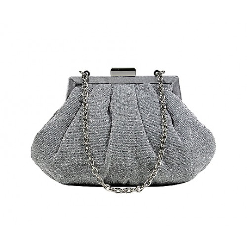 Evening Bag - Glittery Look Fabric w/ Metal Frame - Silver