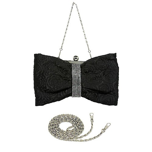 Evening Bag - Quilted Roses w/ Linear Clear Studs - Black