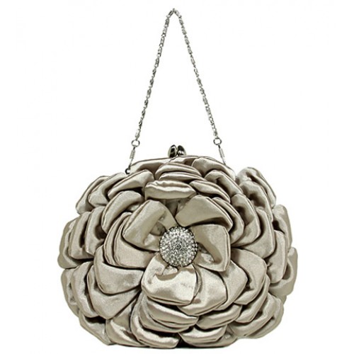 Evening Bag - Satin Flower w/ Metal Frame - Beige