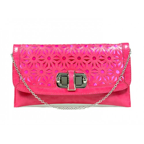 Clutch - Laser Cut Geometric Pattern Flap w/ Twist Lock Closure – Fuchsia – BG-100213FU