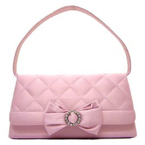 Satin Quilted w/ Bow Evening Purses - Pink