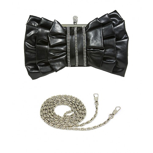 Evening Bag - Ruffled w/ Linear Beads – Black – BG-444MBK