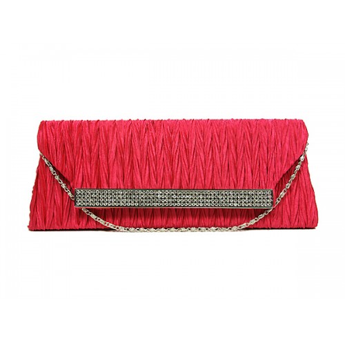 Evening Bag - Pleated Satin w/ Mesh Metal Bar Accent – Fuchsia - BG-92006FU