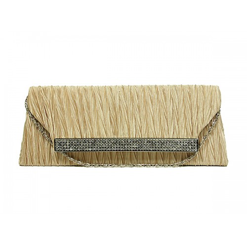 Evening Bag - Pleated Satin w/ Mesh Metal Bar Accent – Taupe – BG-92006TP