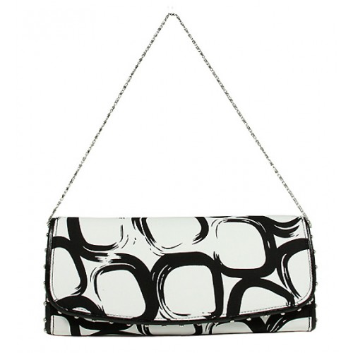 Evening Bag - Geometry Print w/ Flap - White -BG-92117WB
