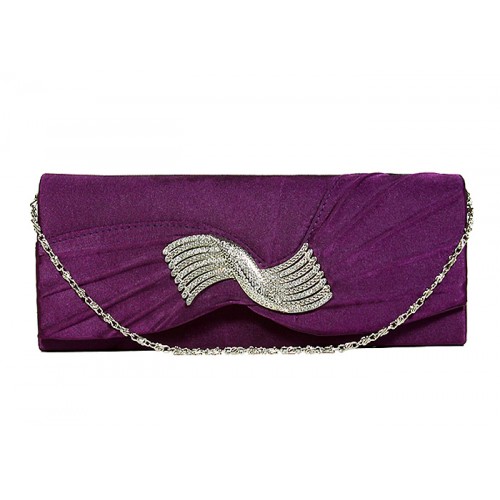Evening Bag - Pleated Satin w/ Rhinestone Charm Accent – Purple – BG-92199PU