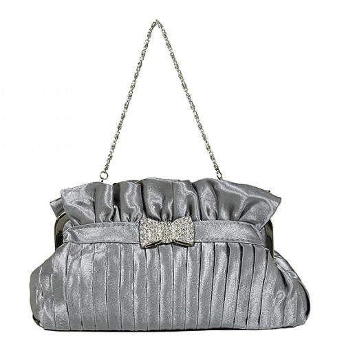 Evening Bag - Pleated Satin w/ Rhinetone Bow - Gray