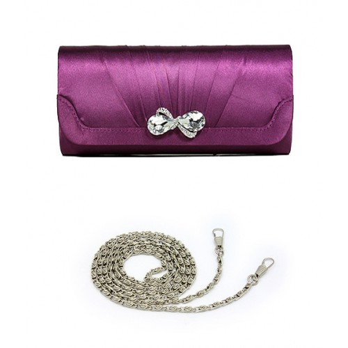 Evening Bag - Pleated Satin w/ Rhinestones Accent Snap - Purple