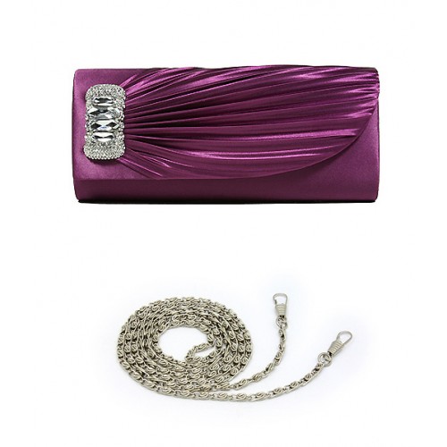 Evening Bag - Pleated Satin w/ Rhinestones Accent Charm - Purple