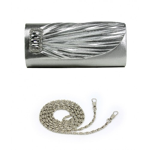 Evening Bag - Pleated Satin w/ Rhinestones Accent Charm – Silver – BG-92409S