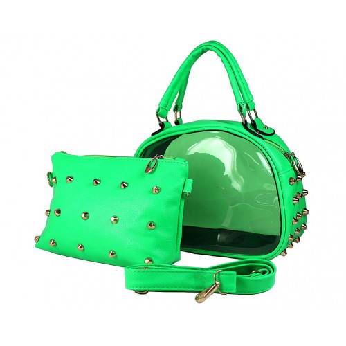 Clear Pvc 2-in-1 Satchel w/ Metal Studded Leather-like PU Trim - Green