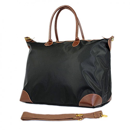 Nylon Large Shopping Tote w/ Nylon Shoulder Strap - Black
