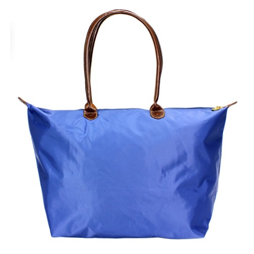 Nylon Large Shopping Tote w/ Leather Like Handles - Blue