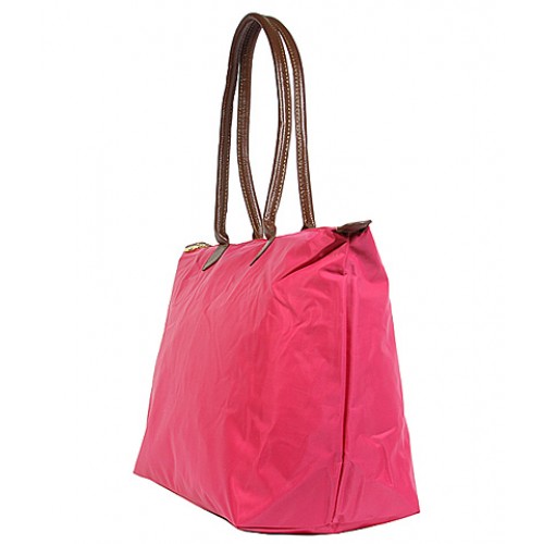 Nylon Large Shopping Tote w/ Leather Like Handles - Fuchsia