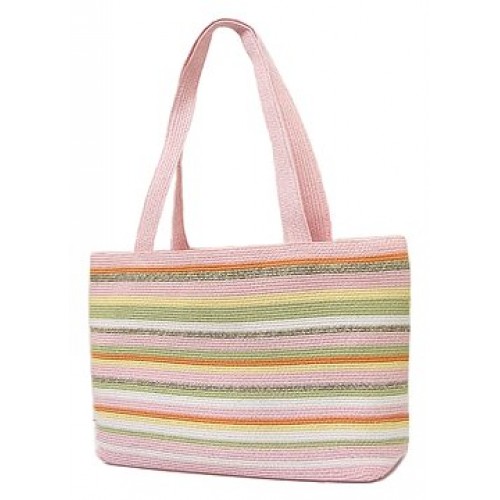 Straw Shopping Tote Bags - Multi Stripes - Pink - BG-ST124PK