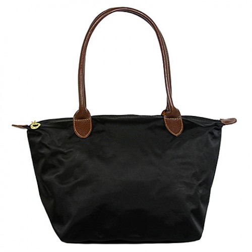 Nylon Small Shopping Tote w/ Leather Like Handles - Black