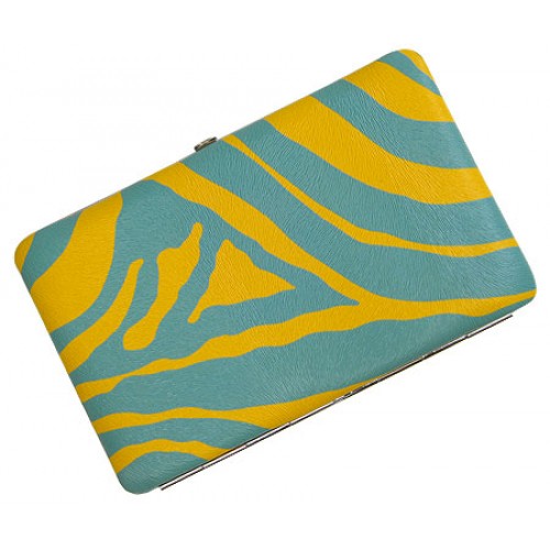 Wallet - Flat Wallet - Zebra Print Flat Wallet -Yellow TQ Blue Stripes - WL-Z002YL-TQ
