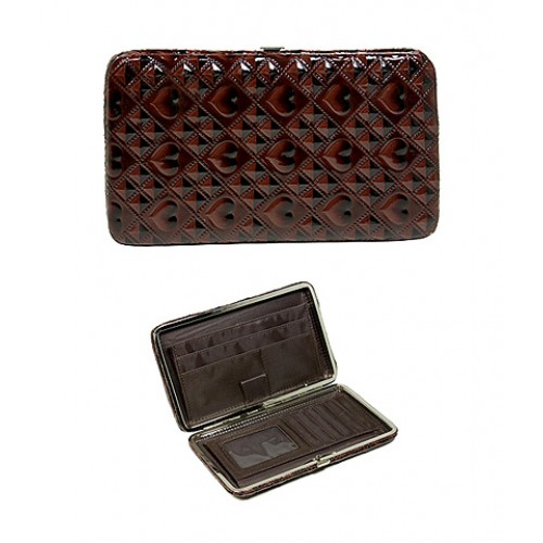 Flat Wallet - Shinny Embossed Hearts - Brown