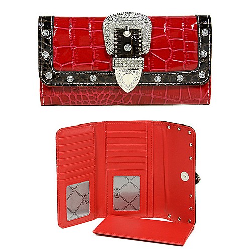 Wallet - Buckled Croc Embossed Wallet - Red - WL-WBLT141CRD