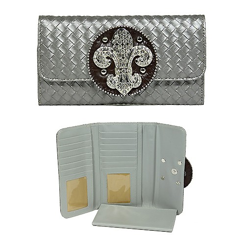 Wallet - Fleur de Lis Charm Wallet/ Embossed Woven-like - Pewter