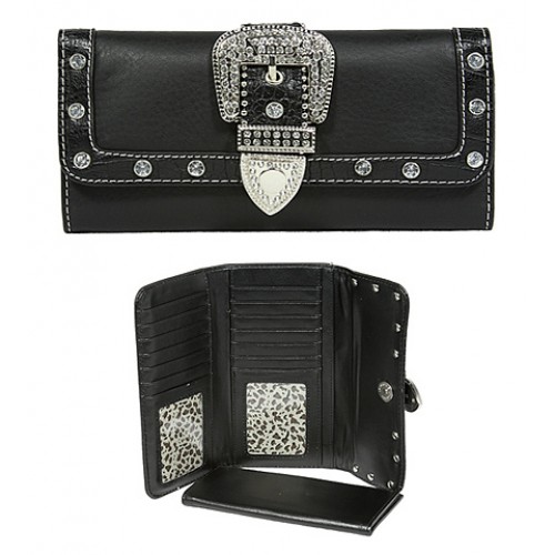Wallet - Belt Buckle Wallet w/ Check Book Cover - Black - WL-WBLT141BK