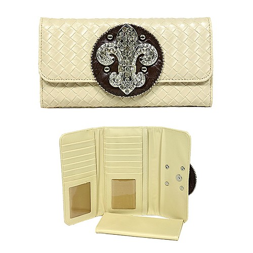 Wallet - Fleur de Lis Charm Wallet/ Embossed Woven-like - Beige